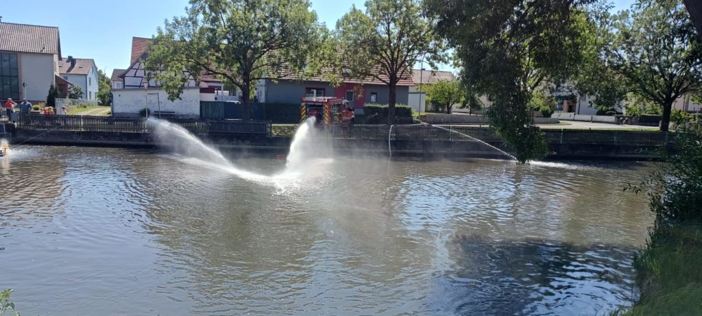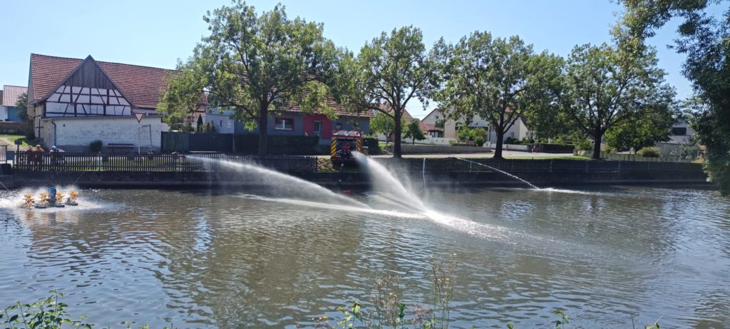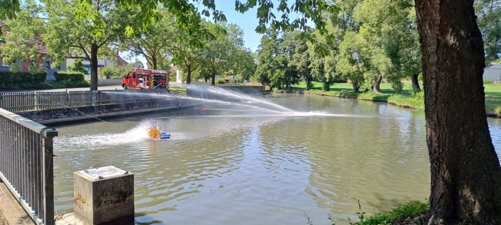 Auf Hilfeersuchen der Gemeinde rückten wir zum belüften des Mühlweihers aus, welcher umzukippen drohte.